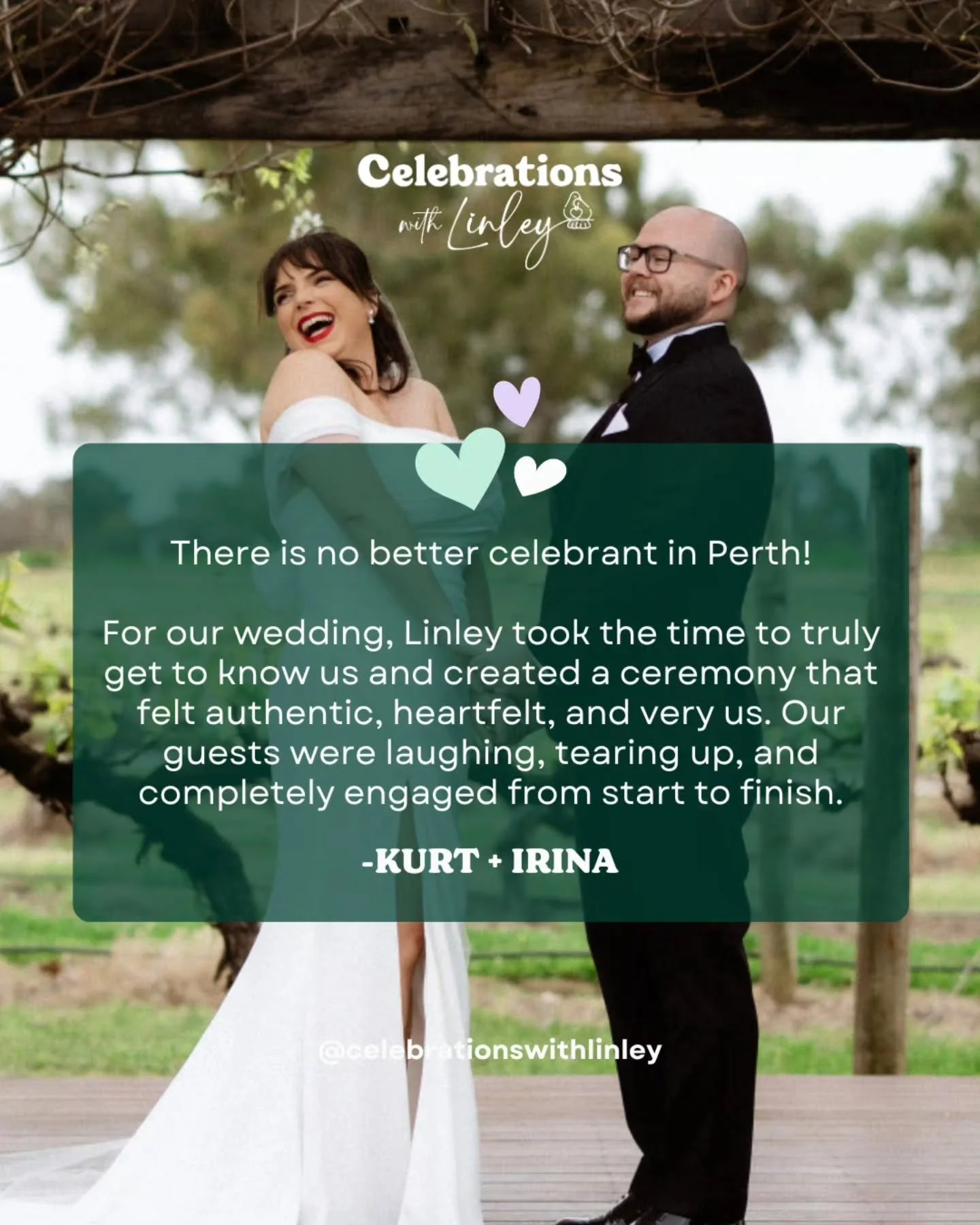 Choosing the right Perth marriage celebrant is a big deal—so why me? Because your love story deserves more than a cookie-cutter script. I craft bespoke ceremonies that are totally you—fun, heartfelt, and filled with all the love, laughter, and happy tears.