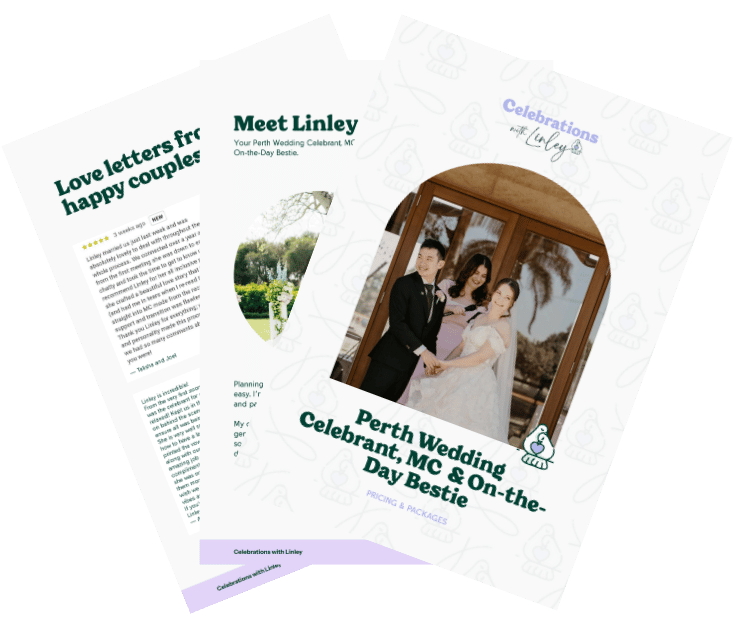 Download the Perth Marriage Celebrant & MC Price GuideGET ALL OF THE INFO ON MY PRICING, PACKAGES AND PROCESS.